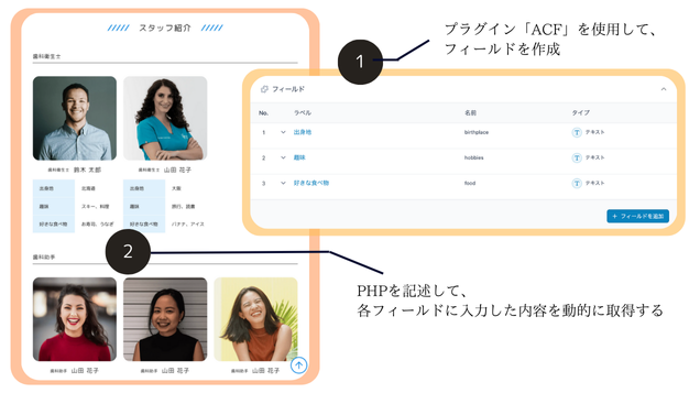 プラグイン「Advance Custom Field」を使用してフィールドを増やし、管理者がどこを更新するか一目でわかるようにしています。