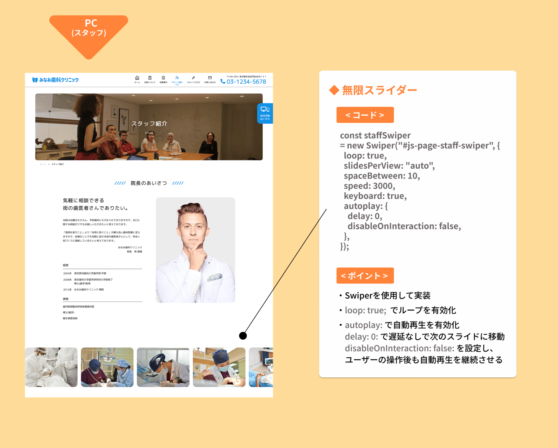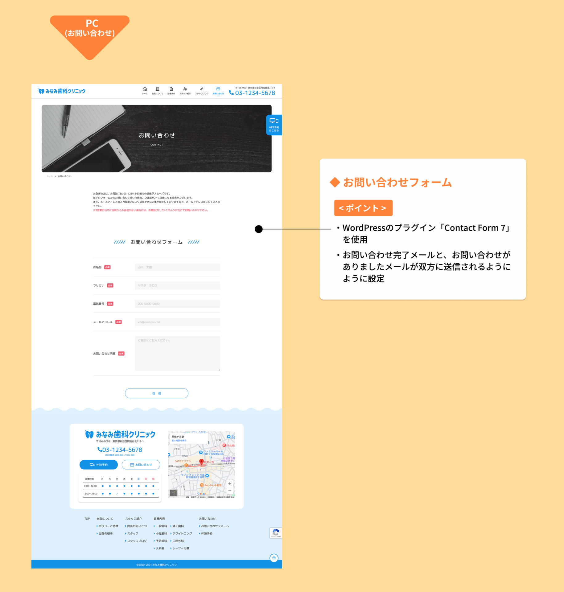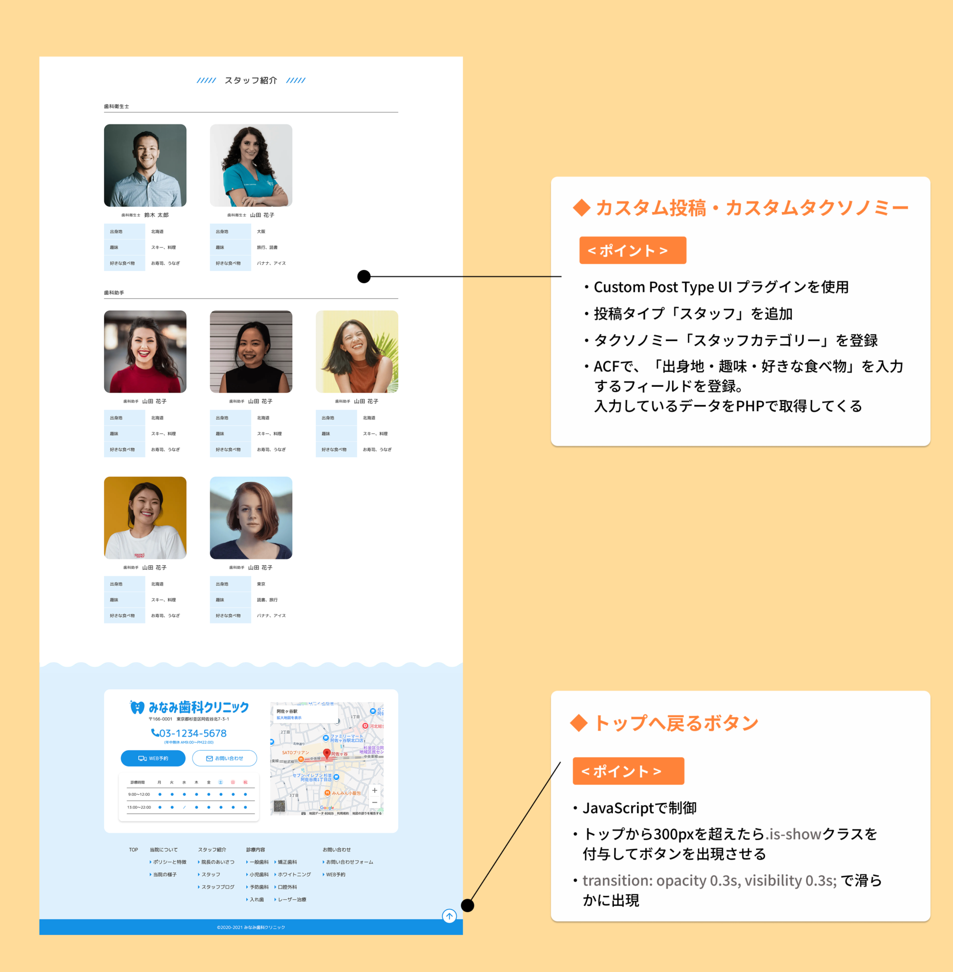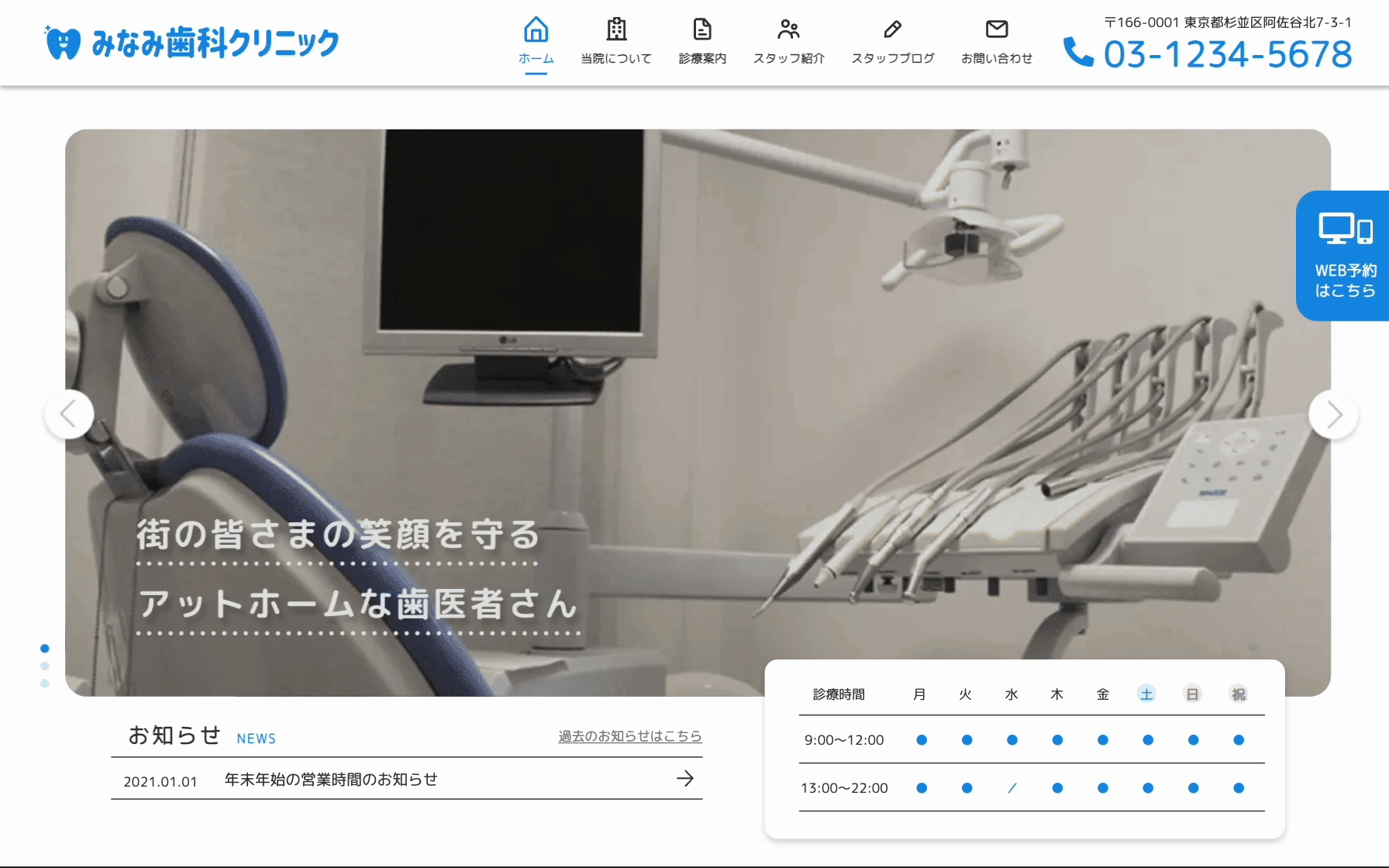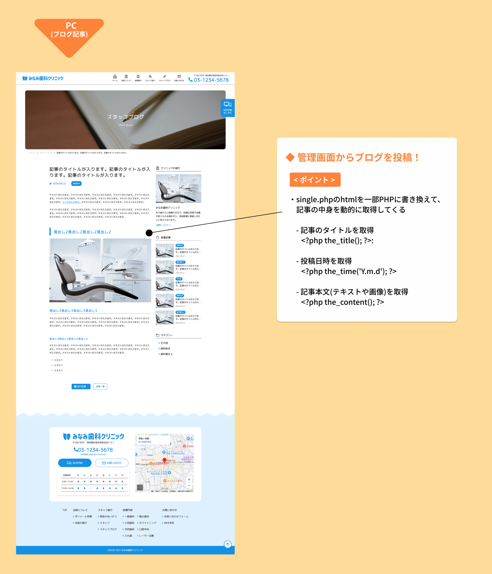 ブログ記事、診療プラン、スタッフ紹介はWordPressの管理画面から更新できるように実装。